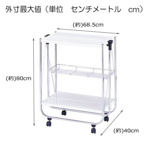キッチンワゴン 女性の方でもワンタッチで折りたたみができます配膳台や作業台に、折りたたみ幅7cm使用しないときはコンパクトにスキマに収納 商品説明 品 番 FKW-685M サイズ (約)幅68.5x奥行40x高さ80cm 【折り畳み時】幅68.5x奥行7(8.5=キャスター装着時)x高さ100cm 【棚内寸(上)】幅54x奥行15x高さ28.5cm 【棚内寸(下)】幅60x奥行40x高さ23.5cm 【網棚内寸】幅54x奥行15x高さ4cm 材 質 フレーム/スチール(25x12mm楕円パイプ)クロームメッキ(シルバー) 棚/スチール 粉体塗装 仕 様 キャスター付き 簡単にコンパクトに折り畳むことができます 組 立 完成品(一部お客様組立) ▼メーカーカタログ▼ >>>画像をクリックすると拡大します<<< メーカー希望小売価格はメーカーカタログに基づいて掲載しています女性の方でもワンタッチで折りたたみができます配膳台や作業台に、折りたたみ幅7cm使用しないときはコンパクトにスキマに収納