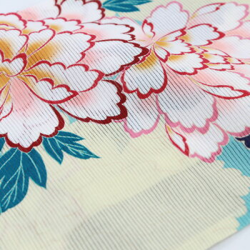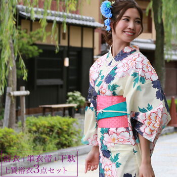 【期間限定30%OFFクーポン】浴衣 レディース セット レトロ 染色&生地が日本製 高級変わり織り綿絽浴衣3点セット「ベージュ地に牡丹」
