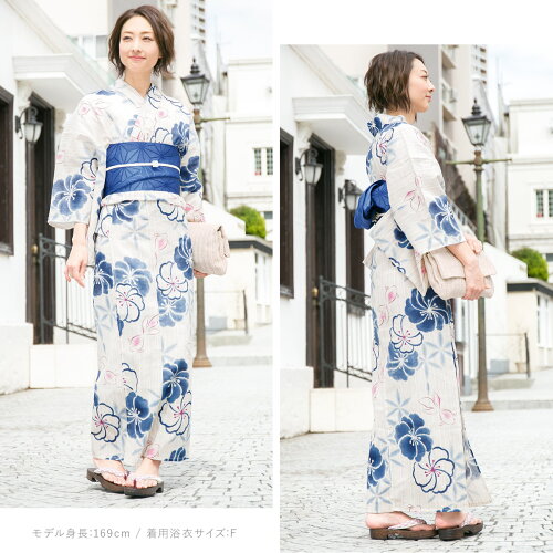 estimated delivery.■浴衣(適応身長:身丈の5cm前後)(素材)表地:綿85% 麻15% 裏地:なし身丈袖丈裄丈Sサイズ約155cm約47cm約65cmフリーサイズ約165cm約49cm約68cm■帯(素材)表地:ポリエステル100% 裏地:なし幅長さサイズ約17cm約356cm■下駄(適応サイズ:23.0〜24.5cm)(素材)鼻緒:ポリエステル 台:桐幅長さ高さサイズ約8cm約24.2cm約3.5cmこちらの商品は、浴衣・帯・下駄の3点セットです。
